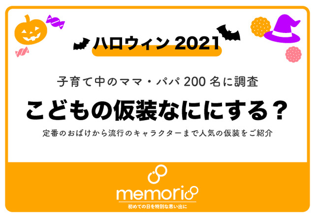 CreativePocket株式会社が企画運営する子育てメディア『memorico(メモリコ)』(https://memorico.jp/)では、「2021年ハロウィンでこどもにさせたい仮装」についてアンケートを実施しました。コロナ禍でこどもたちのイベントが制限される中、お家でも楽しめるハロウィンの仮装について、200名のママ・パパに聞きました。