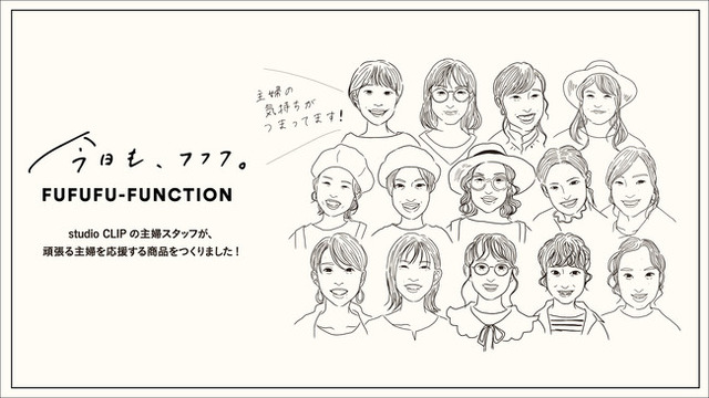 studio CLIPは、年齢問わず主婦のお客さまが多く来店しているということ、studio CLIPを支えてくれているスタッフの中にも主婦スタッフが多いということから、忙しい毎日を頑張る「主婦」が、フフフ。と笑って過ごせるようなアイテムを開発する企画「FUFUFU- FUNCTION」を3月にスタート。