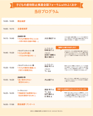 令和3年度もこの取組の一環として、児童虐待問題に対する理解を国民一人一人が深め、主体的な関わりを持てるよう、「子どもの虐待防止推進全国フォーラム with ふくおか」を、令和3年11月7日(日)に福岡県・福岡市・北九州市と共催でオンライン開催いたします。どなたでも無料で参加できます。