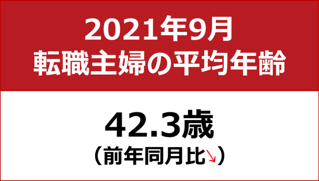 転職主婦の平均年齢は、前月比+0.1歳、前年同月比-0.4歳の42.3歳となった。