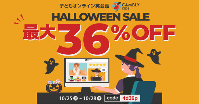 Cambly Inc.(本社:アメリカ・サンフランシスコ、日本代表:佐藤 亜希子)は、子ども向けオンライン英会話サービス「Cambly Kids(キャンブリー キッズ)」の全プランを対象とした特別セールを、10月25日(月)~10月28日(木)の4日間開催いたします。