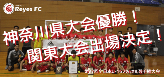 10月23日(土)・24日(日)に神奈川県立スポーツセンターで開催された『第27回全日本U-15フットサル選手権大会』において、東急SレイエスFCフットサルU-15が、クラブ史上初となる神奈川県優勝、そして関東大会進出を決定いたしました。