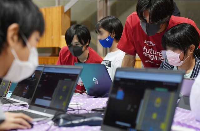 Amazonは、2019年からYMCAと連携し、ウェブサイト・映像制作、ゲームプログラミング教室を実施しており、これまで全国で約900人の子どもたちにSTEM教育を提供してきました。そして、「Amazon Cyber Robotics Challenge」の開始により、Amazonによる支援をさらに拡大してまいります。社会福祉法人みその聖園子供の家で10月26日(火)に開催されたイベントでは、同施設の子どもたちが試行錯誤しながら一人ひとりのペースでゲームに取り組み、プログラミングやロボット工学の基礎を学習しました。また、YMCA高校生事業部の高校生たちが講師となり、パソコンに触れたことがない子どもたちや、プログラミングの知識が少ない子どもたちをサポートしました。