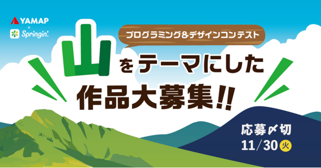 登山地図GPSアプリ「YAMAP」を運営・開発するヤマップと、プログラミングアプリ「Springin’(スプリンギン)」を開発・運営するしくみデザインは両社とも福岡市博多区に本社を持つ企業です。同じ「福岡発IT企業」のコラボレーションとして、この度「Springin’(スプリンギン)」でのコンテストを協賛いただくことになりました。