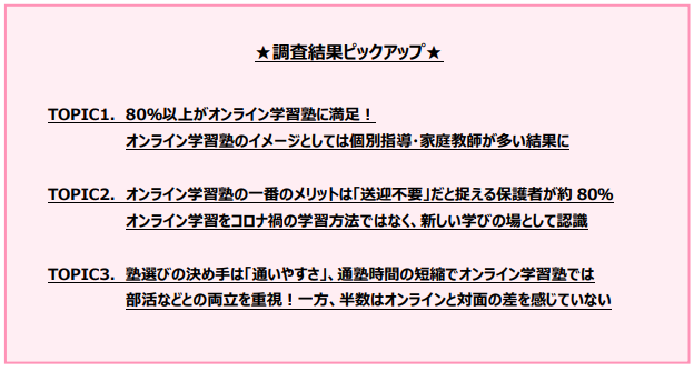 Topic1. 80%以上がオンライン学習塾に満足!
