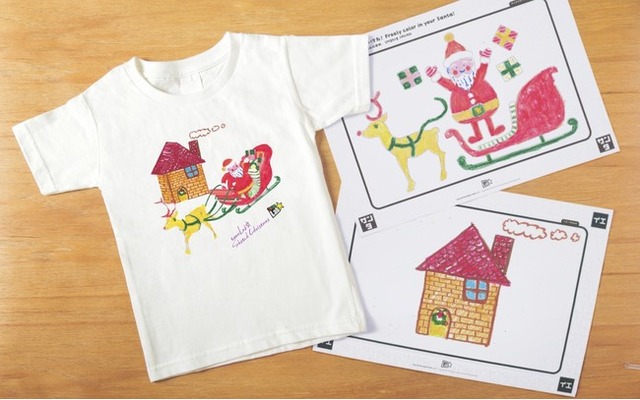 「お絵かきクリスマス」で描いたサンタクロースなどの絵を「お絵かきファクトリー」でオリジナルグッズにできる