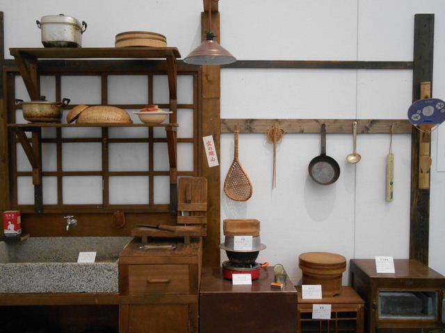 自宅での婚礼の様子と家電普及前後の台所を実物大のジオラマで展示