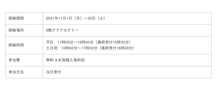 ※2021年10月29日付けプレスリリース「「チンアナゴとねむリウム」を11月11日(木)開催」(https://www.sumida-aquarium.com/wp/wp-content/uploads/2021/10/1029_final-1.pdf)参照。