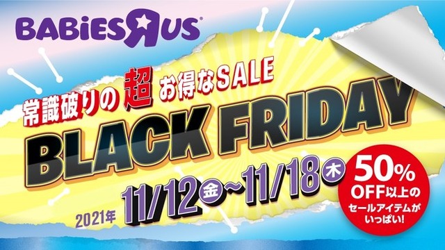 玩具とベビー用品の国内最大級の総合専門店を運営する日本トイザらス株式会社(本社:神奈川県川崎市、以下、日本トイザらス)は、全国のトイザらス、ベビーザらス店舗(併設型店舗含む)※1およびトイザらス・ベビーザらス オンラインストア( https://www.toysrus.co.jp/b/ ) にて、マタニティ・ベビー用品の「ブラックフライデー」セールを開催いたします。全国のトイザらス、ベビーザらス店舗では2021年11月12日(金)より、オンラインストアでは前日の11月11日(木)18時00分より、対象商品を大幅割引価格でご提供いたします。