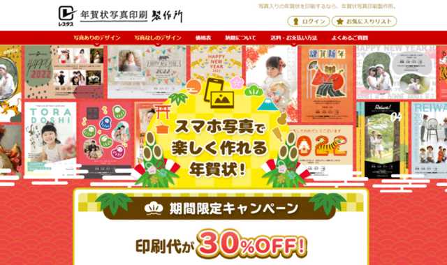 現在、サイトOPENを記念して「年賀状印刷代30%OFFキャンペーン」を実施中しております。ぜひこの機会にご利用くださいませ。