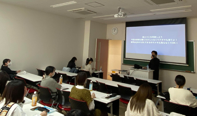 今回は貴重なお話をいただきまして誠にありがとうございました。対象学生は3年生が大半ですが、就活に入り始めた時期でもあり、それぞれ悩んでいることが今回の授業を通してわかりました。どの業種に行くか?どの会社がよいか?の悩みの前に、「自分とはどのような人間なのか」という問いが今の彼らには大いにありました。その中で自分の持つ強みや弱みを見つめ直す必要性、コンプレックスや消極的な気持ちを乗り越えたいという意思にも気づきました。学生の感想では、「やりたいこと」だけでなく「やりたくないこと」を考えることの必要性、チャレンジすることへ背中を押してもらったなど、中川さんの話を聞いて前向きに取り組もうとする気持ちに変化したことがよくわかりました。ぜひまたお越し下さいましたら幸いです。