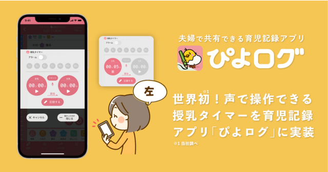 スマートフォン向けアプリの開発・運営を行う株式会社ぴよログ(所在地:愛知県半田市 代表取締役社長:榊原 洋平)は、赤ちゃんの育児記録(授乳やオムツ替え、身長・体重など)ができるスマートフォン向け育児記録アプリ「ぴよログ」にて2021年11月10日より世界初※1となるiOS の音声認識機能 (Speech Recognition) を用いた授乳タイマーの音声操作を実装、公開します。※1.当社調べ