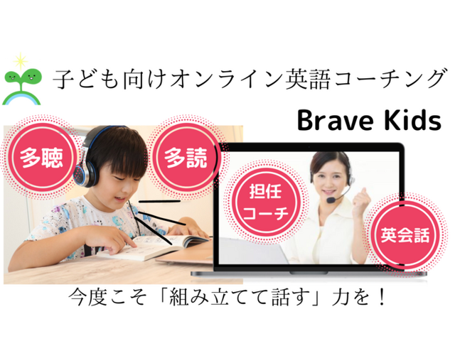 『Brave Kids』とは、担任コーチの個別指導のもと、自宅での多聴多読からマンツーマン英会話まで、全てオンラインで提供する子ども向け英語教育サービスです。英語4技能で最も難しい「話す力」の育成を追求し、自信を持って勇敢に世界と対話するための素地を養います。