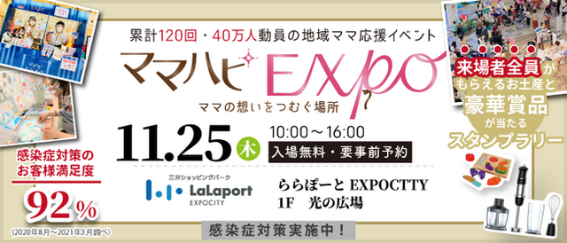 2021年11月25日(木) 10:00~16:00「ママハピEXPO@ららぽーとEXPOCITY」