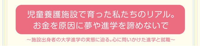 「児童養護施設で育った私たちのリアル。お金を原因に夢や進学を諦めないで!~施設出身者の大学進学の実態に迫る。心に問いかけた進学と就職~」