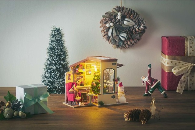 手軽につくれるミニチュアハウスながら、ジングルベルのオルゴールとオレンジ色のLEDライトが付く本格仕様。つくる過程を楽しむことはもちろん、完成したあとも、見ているだけで暖かな気持ちになるミニチュアハウスです。さらに、暖色のライトに照らされた室内は、写真映えも抜群。ちいさな人形や、フィギュアなどと一緒に飾るのもおすすめです。また、空間を音で彩るジングルベルのオルゴールは、クリスマスムードをよりいっそう盛り上げてくれます。