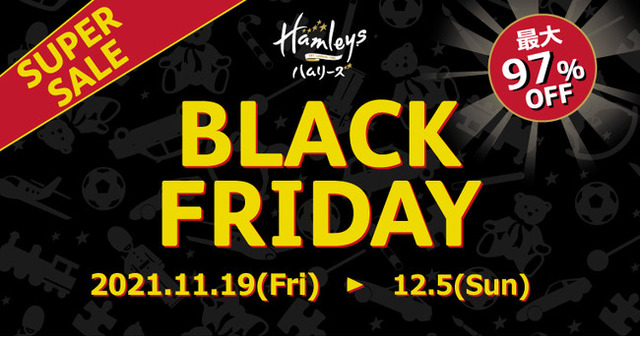 株式会社バンダイナムコアミューズメントが運営する英国発の世界最“幸”の遊べる玩具店ハムリーズで、おもちゃが当店通常価格から最大97%OFFになるハムリーズ最大のセール「ハムリーズ ブラックフライデー※1」を2021年11月19日(金)から12月5日(日)まで開催します。