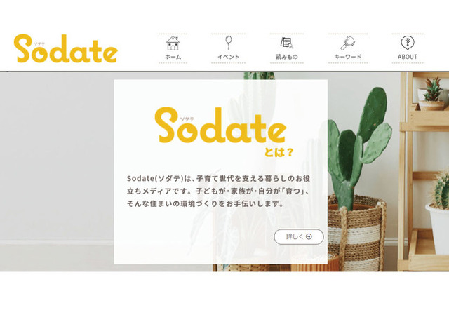 「Sodate(ソダテ)」は、「家族とのお家時間がもっと好きになる」をコンセプトに1.「整理・収納」2.「インテリア・家具家電」3.「安全・防災」4.「家づくり」5.「食・レシピ」6.「子育て」の6つのカテゴリーに分けて、子どもと過ごす生活を楽しむヒントやアイディアを届けるメディアとして運営していきます。さらに、「家族みんなで参加できる」「いつもの暮らしが少し楽しくなる」をテーマにオンラインイベントなども発信していく予定です。