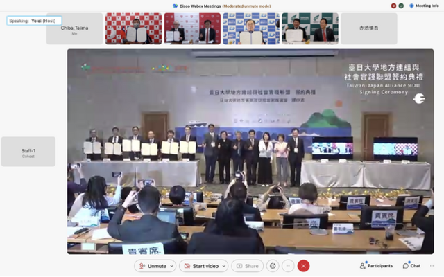 2021年11月16日に、各大学の学長が参加して本連盟の調印式をオンラインで開催しました。また、台湾行政院教育部長、日台交流協会理事長、台日関係協会長などに祝辞をいただき、盛大に行われました。