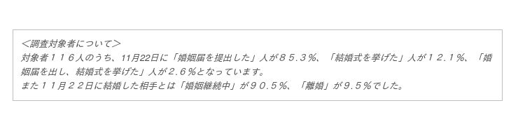 11月22日以外に婚姻が集中する日があまりないため、他の日に結婚した人と正確に比較することはできません