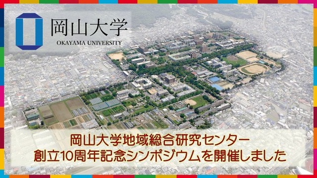 国立大学法人岡山大学(本部:岡山市北区、学長:槇野博史)は、2021年11月9日、岡山大学地域総合研究センター(AGORA)の創立10周年を記念して、オンサイトとオンラインのハイブリッド形式でシンポジウムを開催し、一般の方、まちづくり関係の方、大学生、他大学教員、本学関係教職員など約100人が参加しました。