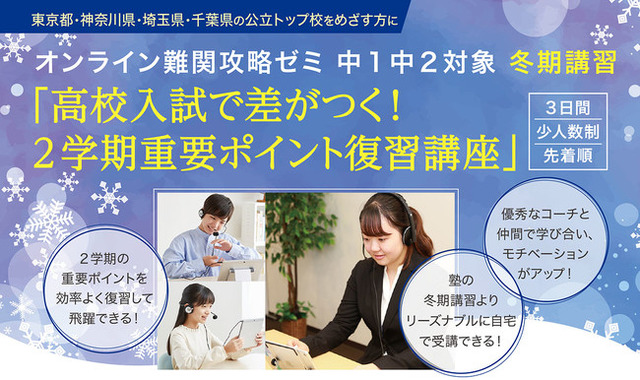 ▼中1・2生対象「オンライン難関攻略ゼミ・冬期講習」の詳細は、下記をご覧ください。