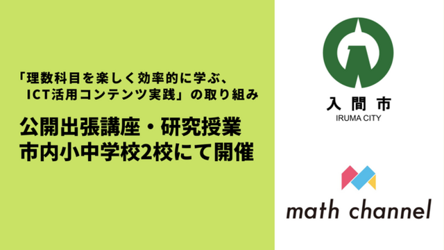 その取り組みの一環として、11月24日(水)には、入間市立高倉小学校様にてmath channelの講師による「ICTを活用した、算数の関心向上・理解促進のための出張講座」を、11月22日(月)には、入間市立上藤沢中学校様にて上藤沢中学校の数学教員が「ICTを活用した、数学授業プログラムの研究授業」を実施致します。