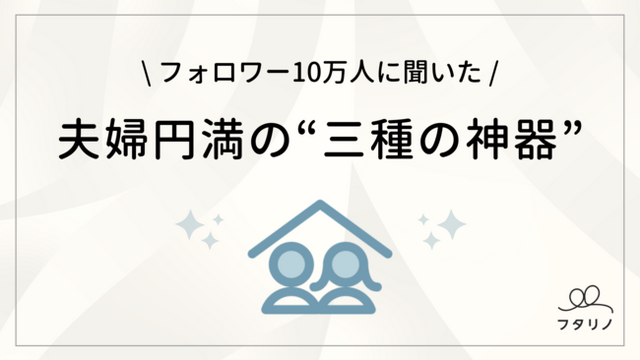 パートナーシップに関するメディアコミュニティ・フタリノは、夫婦円満につながる「3種の神器」に関する調査を実施、その結果を公表しました。