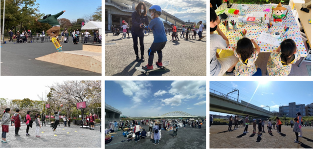 当日は、東京2020大会をきっかけに注目が集まるスケートボードとインラインスケートの無料体験会(要事前申込、応募受付締切)や、プロスケータ―等によるパフォーマンスを実施します。その他にも、バスケットボール、ドッチボールなど様々なアクティビティを体験できます。また、キッチンカーや地域店舗による出店や、フリーマーケットなどの開催を予定しており、一日を通して多摩川河川敷で楽しむことができます。
