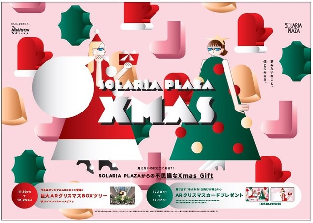 西日本鉄道株式会社が運営するソラリアプラザでは、11月19日(金)から12月25日(土)の間、1階広場「ゼファ」に、AR(拡張現実)を活用した巨大ARクリスマスツリーを設置しております。ARだからこそ可能な遊び心のある動きやデザインで、これまでにないポップなクリスマスが楽しめます。また、お客さまの時間的・空間的な分散化や非接触での鑑賞に繋げることで、コロナ禍においても安心してクリスマスムードを味わっていただけます。ARの活用は、イルミネーション不使用による電力削減や、オーナメントの廃棄量削減など、SDGsへの貢献も期待されています。