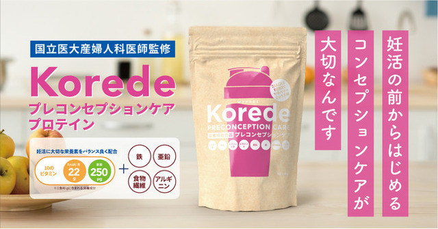 プレコンセプションケアとは、将来、より健康な子供を生むために妊娠を考える前から行うカラダのケアです。体型や筋肉量は一朝一夕で作られるものではなく、妊活を考えない環境であっても、未来の準備のために健康的なカラダでいることが大切です。Koredeマキベリープロテインは、1食あたり22gのたんぱく質をとれるように作っています。