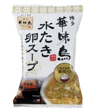 水たき料亭博多華味鳥では、水炊きの〆に雑炊を提供していますが、卵スープにご飯をいれることで、雑炊の素としてもお楽しみいただけるフリーズドライ商品です。