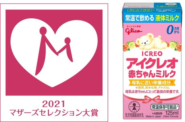 江崎グリコ株式会社が販売している日本初の乳児用調製液状乳(以下、液体ミルク)「アイクレオ 赤ちゃんミルク」は、 “マザーズセレクション大賞2021”(主催:一般社団法人日本マザーズ協会)を受賞しました。2019年の発売以降3年連続での受賞となります。