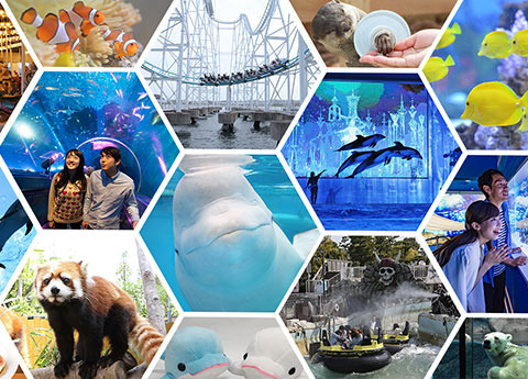 この特別チケットは、ワンデーパス(水族館4施設+アトラクションフリーパス)のほか、各ショップやレストラン、スペシャルアミューズメントでご使用いただけるクーポン券付きなので、水族館やアトラクションだけではなく、島内全体をお得にお楽しみいただくことができます!