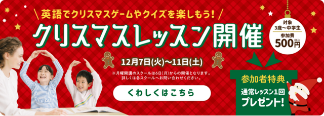 3歳~小学生 ・中学生対象・までのお子さまを対象に12月7日~11日まで