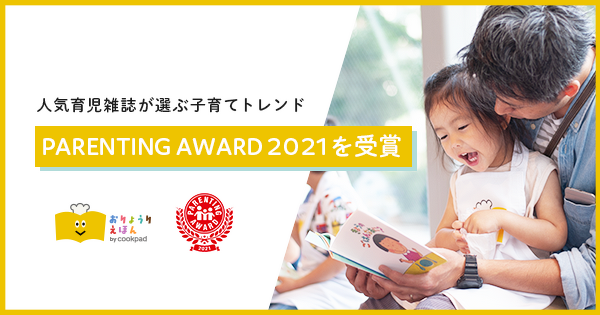 クックパッド株式会社が運営する子ども向け食育絵本サブスクリプションサービス「おりょうりえほん」は、子育て世代に支持される育児雑誌の編集部が協働で運営するペアレンティングアワード事務局が主催する「第14回ペアレンティングアワード」においてモノ部門賞を受賞しました。