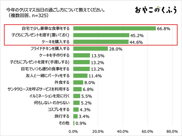 子育て家庭は「おうちでクリスマス」が主流、クリスマスは「自宅で少し豪華な食事をする」と回答した人が約7割