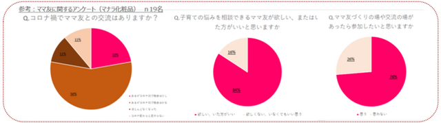 マナラ化粧品が19名の未就学児のお子様がいるママに行ったアンケートでは、9割のママがコロナ禍で友だちとの交流の機会が減ったと答え、8割がママ友と触れ合いたいと考えている状況が見えてきました。