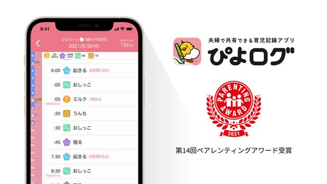 スマートフォン向けアプリの開発・運営を行う株式会社ぴよログ(旧榊原防犯株式会社)(所在地:愛知県半田市 代表取締役社長:榊原 洋平)は、赤ちゃんの育児記録(授乳やオムツ替え、身長・体重など)ができるスマートフォン向け育児記録アプリ「ぴよログ」が「第14回ペアレンティングアワード」にてモノ部門を受賞しました!