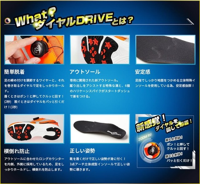 ダイヤルDRIVE最大の特徴である『ダイヤルシステムと3Dインソール』が足の全体を包み込み、絶妙なフィット感を実現しました。