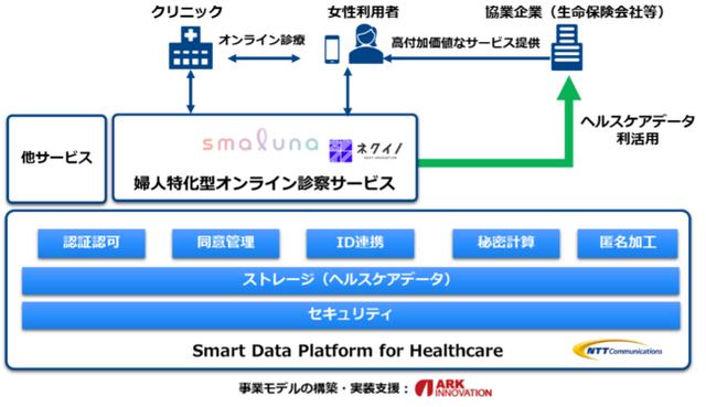 ネクイノが利用者の同意を得た上で収集した問診データやオンライン診療データ、「スマルナ」の提携クリニックで取得した治療データなどを、NTT Comが開発したヘルスケア業界向けプラットフォーム「Smart Data Platform for Healthcare」※4で収集・蓄積・加工・分析し、高付加価値な事業モデルの創出に繋げます。