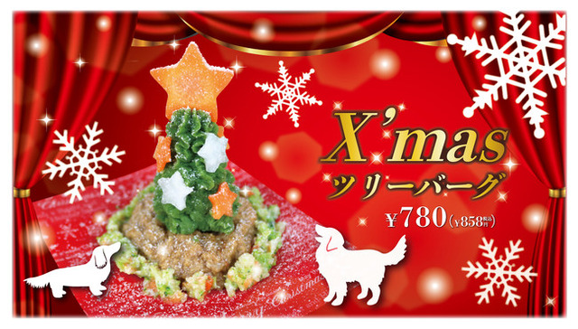 このたびの、期間限定商品「X’masツリーバーグ」は、2021年クリスマスシーズンをわんちゃんと一緒に楽しんでいただくための商品となっており、クリスマスツリーをイメージした可愛らしい商品となっております。