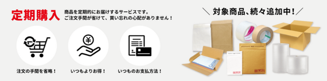 「定期購入サービス」の対象商品は、ダンボール箱や梱包資材などの400点以上の商品が対象となっており、随時追加を予定しております。ダンボール通販業界No.1の専門店ならではの梱包資材ラインナップをご用意しております。