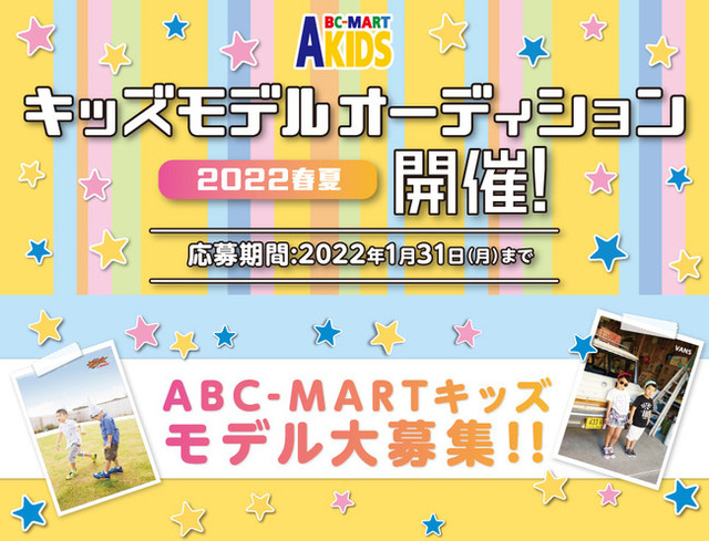 株式会社エービーシー・マート(本社:東京都渋谷区、代表取締役社長:野口実)は、「キッズモデルオーディション2022春夏」を2021年12月1日(水)より開催します。2021年12月1日(水)~2022年1月31日(月)の期間中にInstagramにて指定の条件を満たした投稿により応募受付をし、応募者の中から10名を公式アンバサダーに選出、さらにその中から数名をABC-MARTキッズの22春夏ビジュアルのモデルとして起用します。