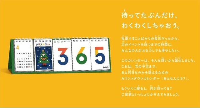 ただ日付が記載されているものではなく、次のイベントまでの日数を数えるためのものとして、カレンダーを再定義した本カレンダー。子どもたちが待ち望むイベントをカードの中から選び、その日までをカウントダウンできる仕様です。