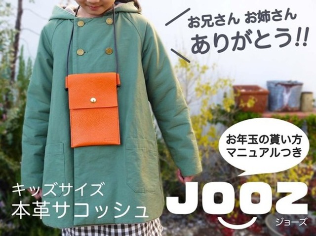 「JOOZ(ジョーズ)」は「お正月にお年玉をもらうときの集金袋として使用してほしい」と企画・製作された本革製子ども向けサコッシュです。JOOZ (ジョーズ)の商品名には「お年玉をもらう子ども達に世渡り上手・生き方上手になってほしい」という願いが込められています。