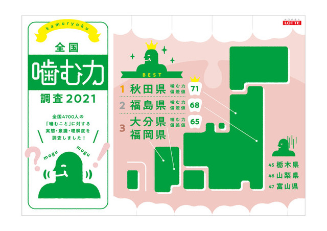 1. 全国47都道府県「噛む力」ランキング第1位は「秋田県」 ガムを噛む頻度の高い県が上位にランクイン!