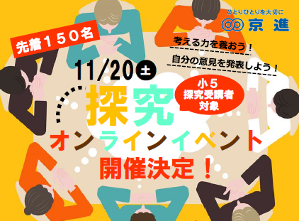 関西・愛知を中心に学習塾を展開する京進は、小学生を対象に2021年11月20日(土)、自分で考え発表する力、異なる意見を聞く力を養うイベント、「オンライン探究教室」を開催しました。