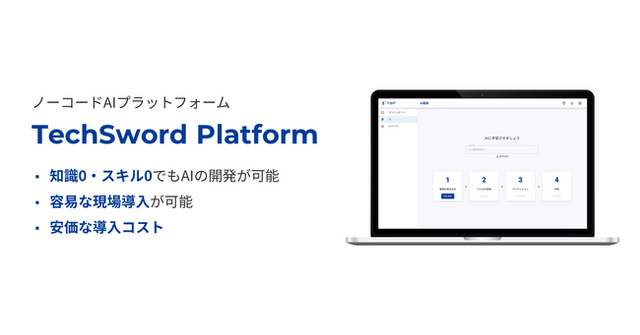 AI技術を民主化し、最適化された未来社会の実現を目指す岡山大学発AIベンチャー株式会社TechSword(本社:岡山県岡山市、代表取締役CEO:長島慶樹)は企業数を限定して、ノーコードAIプラットフォーム「TechSword Platform」β版のトライアル提供を開始いたしました。
