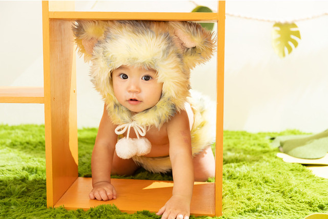 年賀状用やその年に生まれた赤ちゃん用衣装で人気の高い干支のきぐるみ衣装。今年もぱれっとオリジナルで作成しました。あかちゃんにあわせて全ての質感を優しく柔らかくまとめている暖かさを感じるビジュアルです。